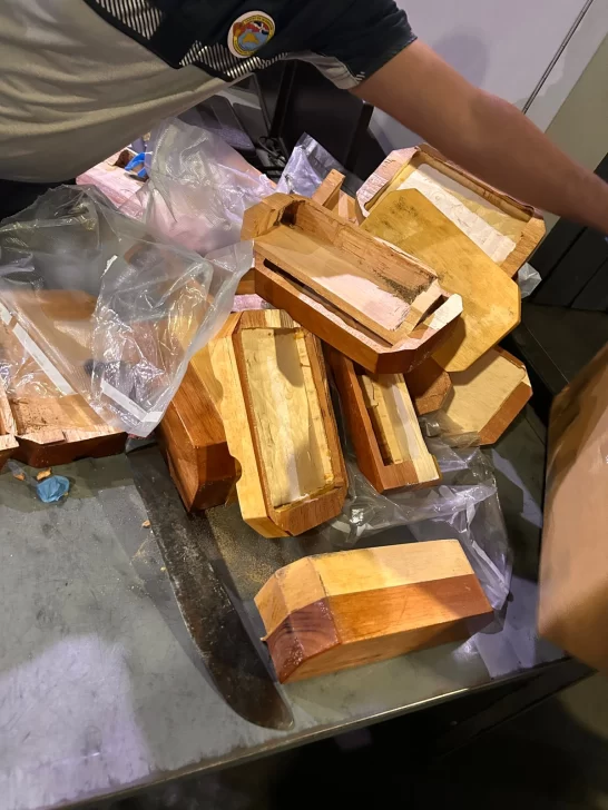 Posteriormente realizaron un allanamiento, mediante la orden 01876-2024 en una residencia, ubicada a la calle Scouts, esquina Anselmo Copello del sector La Joya, donde confiscaron otros cinco paquetes de cocaína, camuflados en ceniceros de madera, para un total de 17 paquetes.