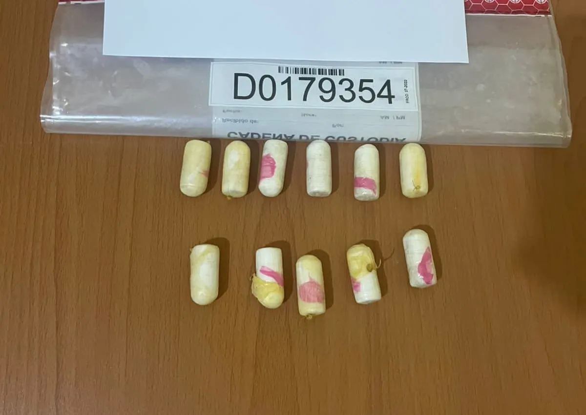 Posteriormente, el extranjero de 58 años admitió llevar en sus vías digestivas sustancias narcóticas, por lo que fue puesto en manos de médicos especialistas y tras ser sometido al proceso, expulsó 11 bolsitas de cocaína, con un peso de 150 gramos.
