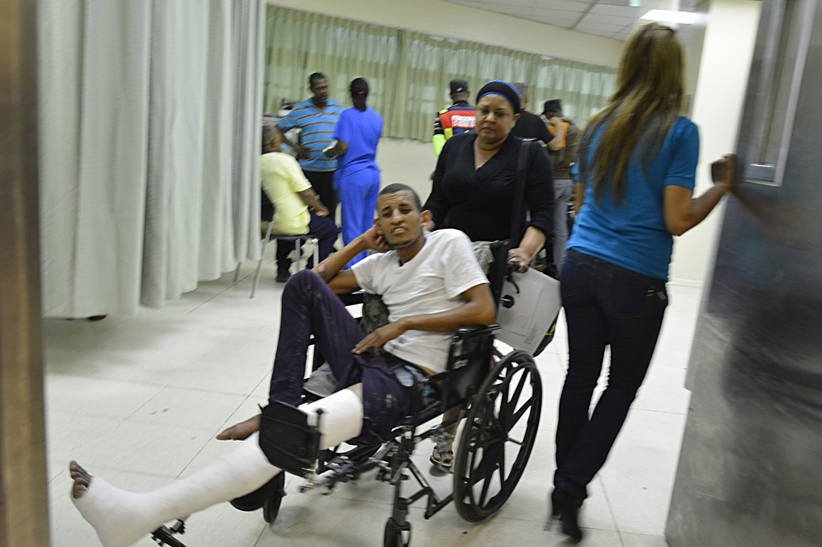 SANTO DOMINGO, República Dominicana.- “Desde las 7 de la mañana estamos aquí a la espera de que lo lleven a cuidados intensivos”, manifiesta Arisleyda Reyes quien se encontraba sentada a la entrada de la Emergencias del Hospital Traumatológico Dr. Ney Arias Lora a la espera de que su hermano Víctor Reyes fuese trasladado a la sala de intensivos, tras sufrir una contusión craneal.