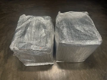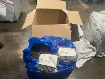 Por instrucciones del fiscal actuante, las cajas forradas con papel aluminio fueron abiertas, encontrándose en su interior dos fundas de color azul llenas de marihuana.