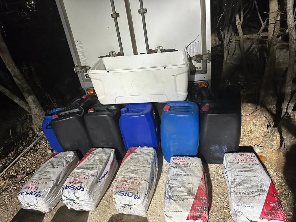 A los detenidos se les decomisó además varios garrafones de combustibles, dos motores Yamaha, fuera de borda, de 115 caballos de fuerza cada uno, un celular, una neverita con agua y comestibles, entre otras evidencias.