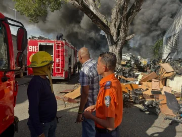 Durante las labores de respuesta también participó la Dirección Municipal de la Defensa Civil de Haina, cuyos miembros se encargaron de asegurar el perímetro de los almacenes y de las áreas cercanas, colaborando con las tareas de prevención y seguridad mientras los bomberos realizaban las operaciones para sofocar el incendio.