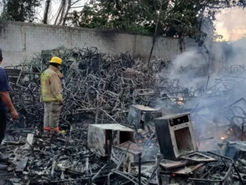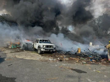 De acuerdo con informaciones preliminares, el fuego se propagó rápidamente en el área del parque y zonas cercanas a los almacenes, generando una intensa humareda visible desde distintos puntos del municipio. Videos captados en el lugar muestran cómo las llamas consumieron gran parte de las instalaciones, provocando importantes daños en la estructura y en los materiales almacenados.