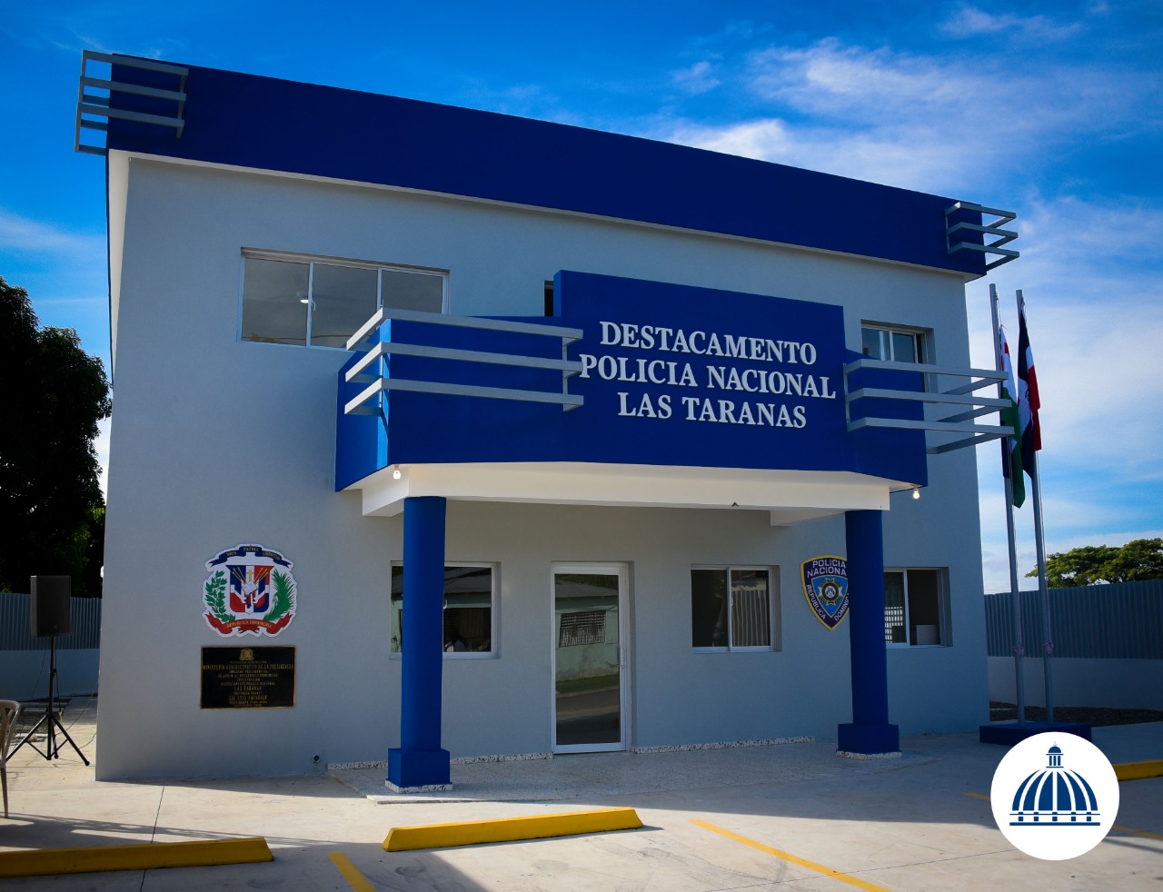 El destacamento del municipio de Las Taranas, valorado en RD$ 8, 392,066.18 millones, es de dos niveles, posee un área solar de 759.82 metros cuadrados y cuenta con dos cárceles para 15 personas para hombres y mujeres, un depósito de armas y propiedades, oficina de investigaciones criminales, dormitorios con baños, cisterna así como un inversor con cuatro baterías, entre otras especificaciones.