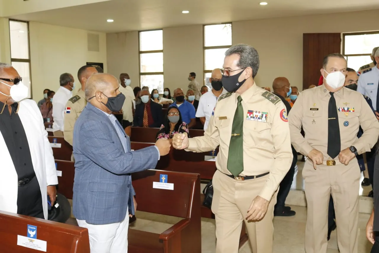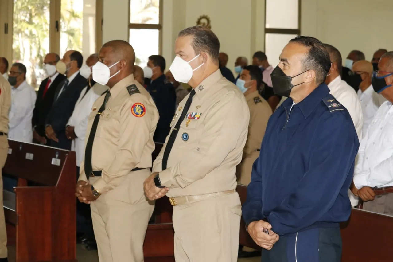 A la misa oficiada por el reverendo diácono Elías Caamaño, asistieron el alto mando militar, los comandantes generales de las tres fuerzas, oficiales generales, almirantes, superiores, subalternos y alistados en la honrosa condición de retiro, y miembros de la Reserva de Fuerzas Armadas.