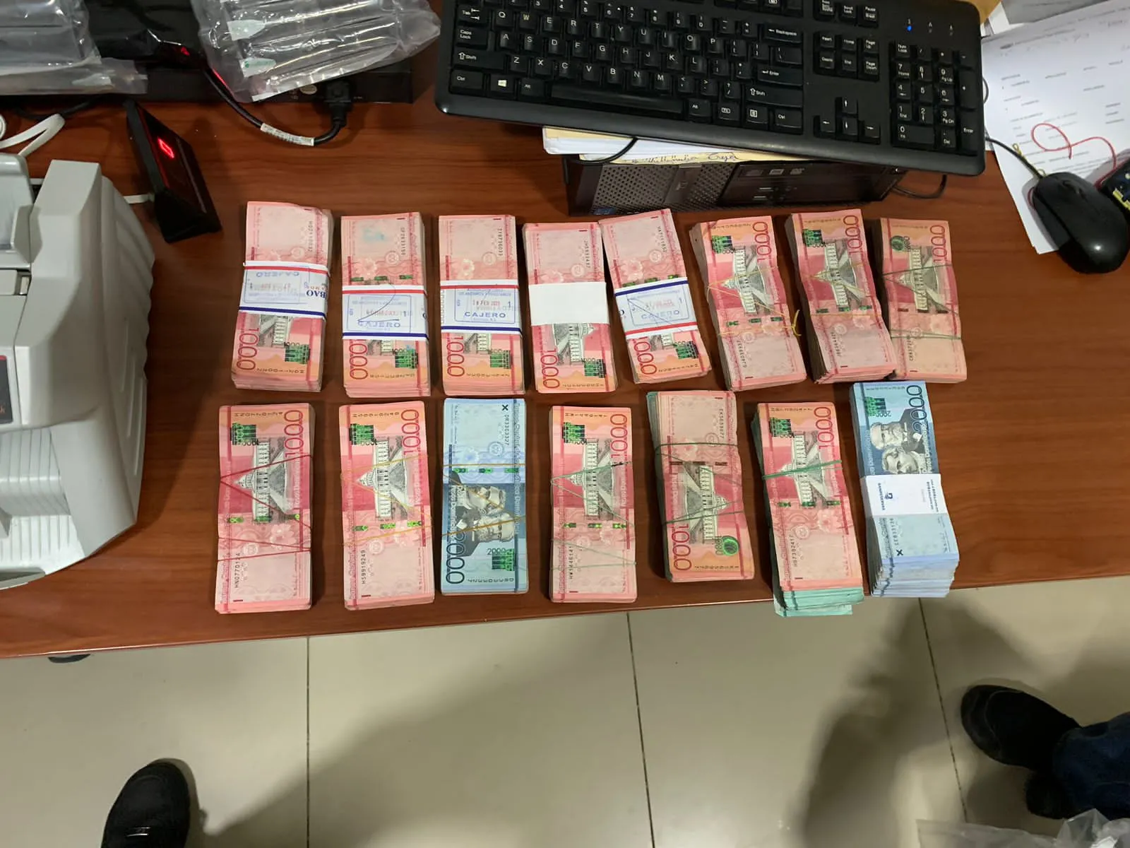 En el operativo también fueron recuperados 10 mil 800 dólares, RD$ 2 millones 136 mil 581 pesos en efectivo y tres vehículos, uno de ellos con un compartimiento secreto tipo caleta.