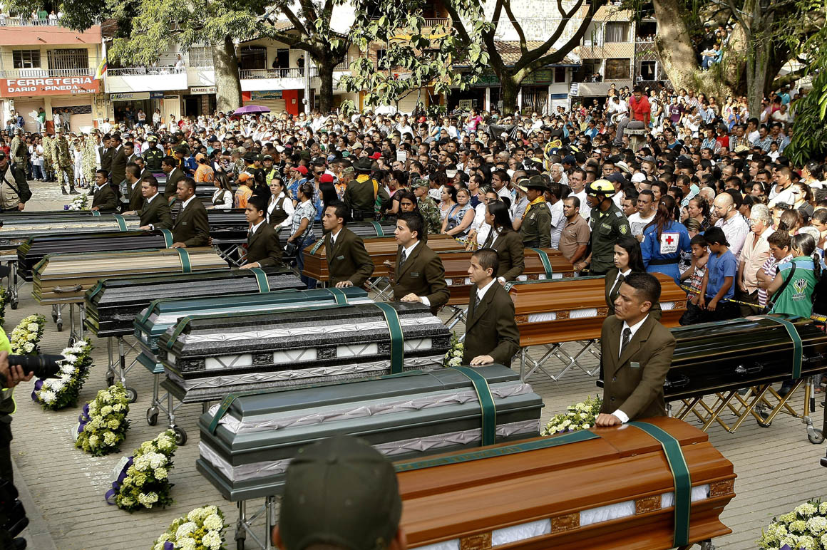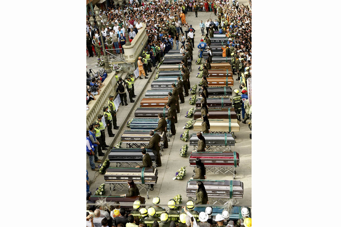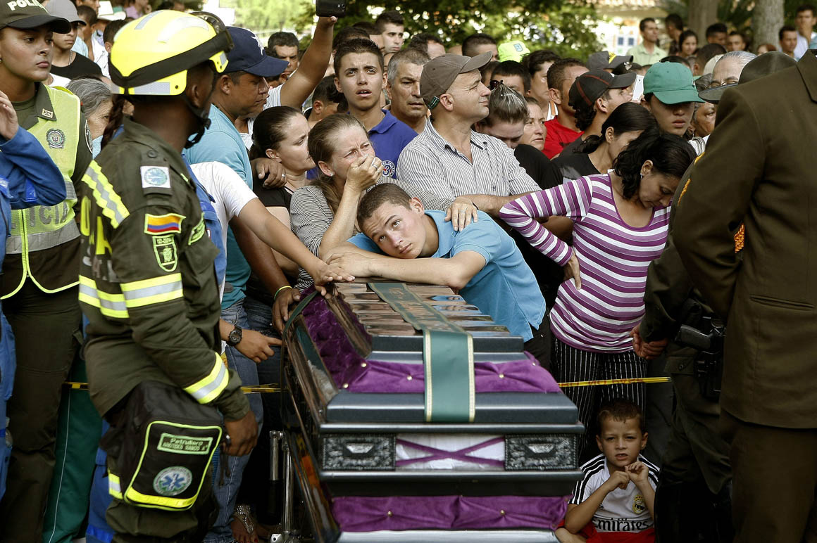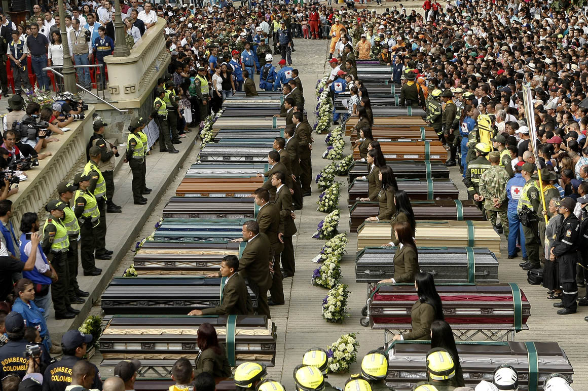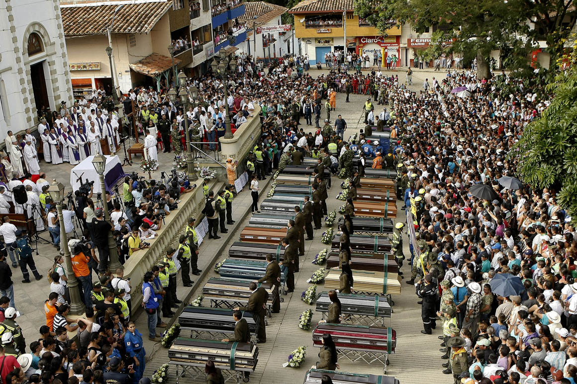 Las escenas de dolor, los desmayos y lamentos frente a los 33 féretros alineados en dos filas uno al lado de otro fueron el común denominador de quienes despidieron a los muertos de la tragedia que esta semana enlutó a Colombia entera.