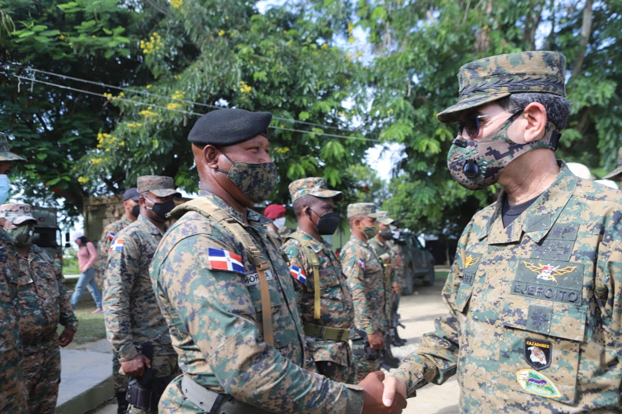 Previo a la reunión multisectorial, el Teniente General, ERD, Carlos Luciano Díaz Morfa, verificó las condiciones de las unidades y destacamentos militares ubicadas en las provincias de Elías Piña y Dajabón. Lo acompañaron además del Comandante del Ejército, el Director de la Policía Nacional, General de Brigada, PN, Eduardo Ramón Sánchez González.