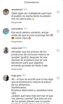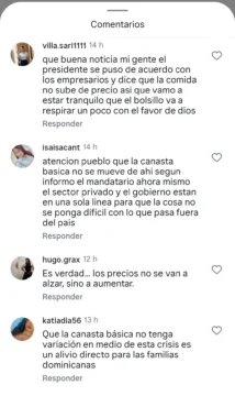 Entre los comentarios, numerosos usuarios valoraron positivamente el anuncio, destacando que la estabilidad en los precios representa un respiro para las familias dominicanas.
