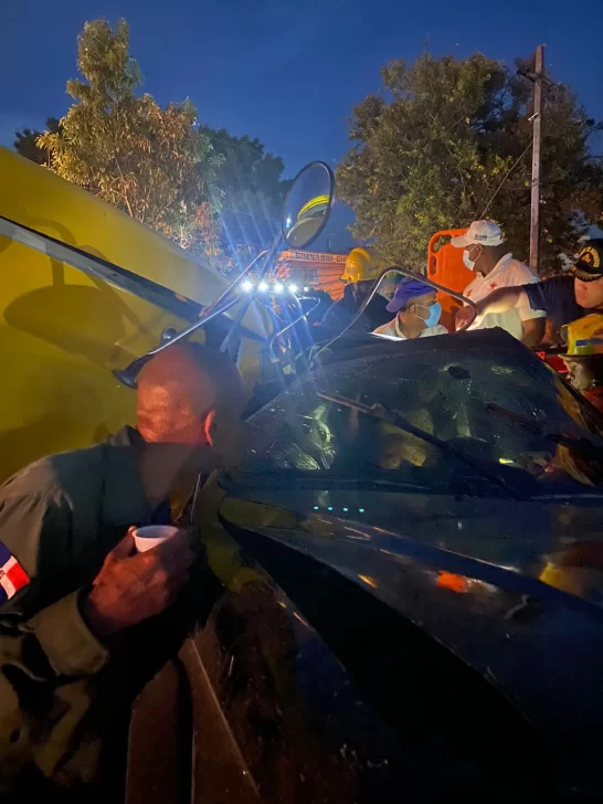 Tras la llamada de alerta de un ciudadano, el servicio de atención a emergencias gestionó la asistencia de 16 unidades tres de bomberos del Distrito Nacional, seis ambulancias de la Dirección de Servicios de Atención a Emergencias Extrahospitalarias (Daeh), cuatro de la Policía Nacional, y tres de la Dirección General de Seguridad de Tránsito y Transporte Terrestre (Digett).