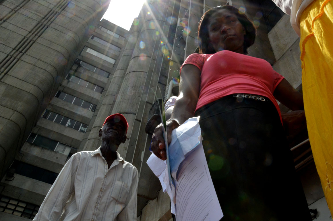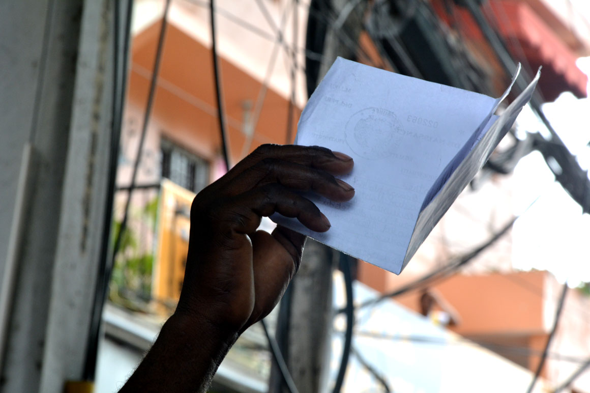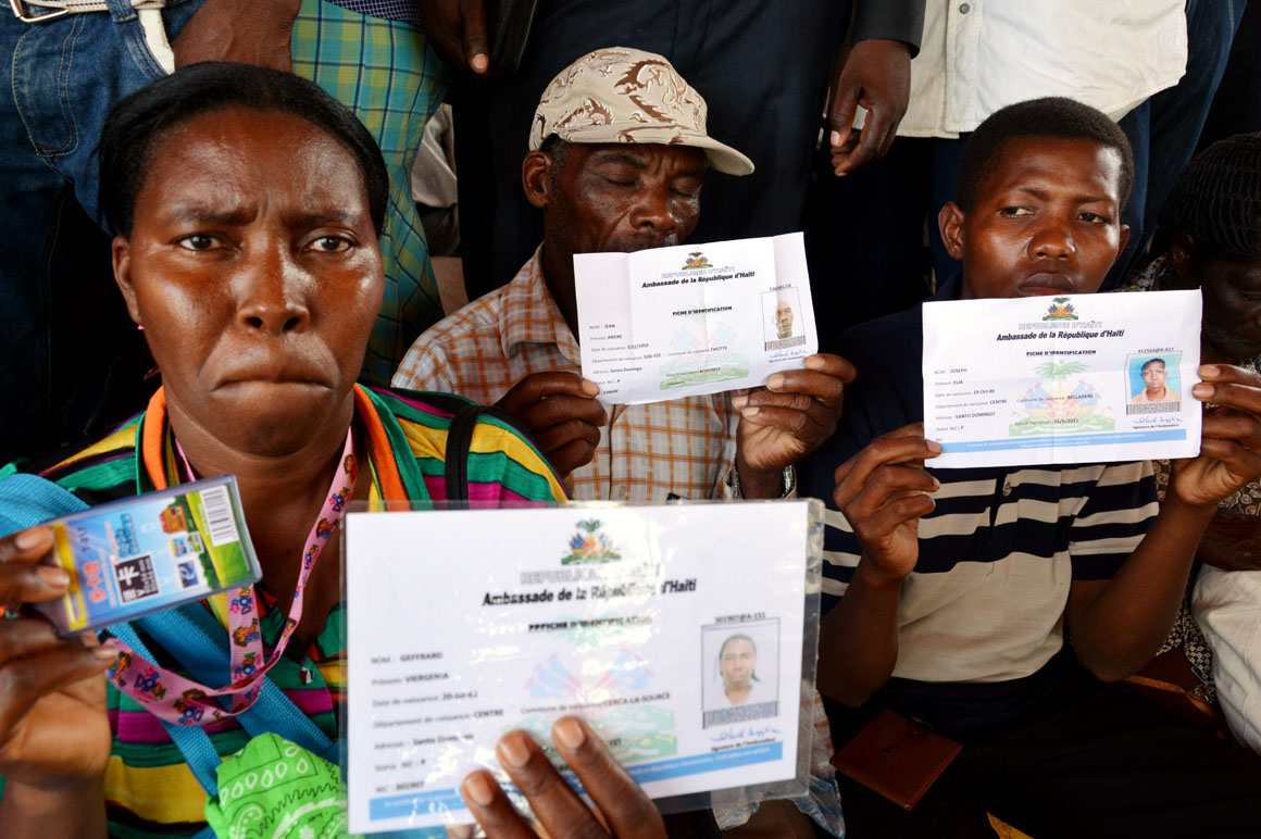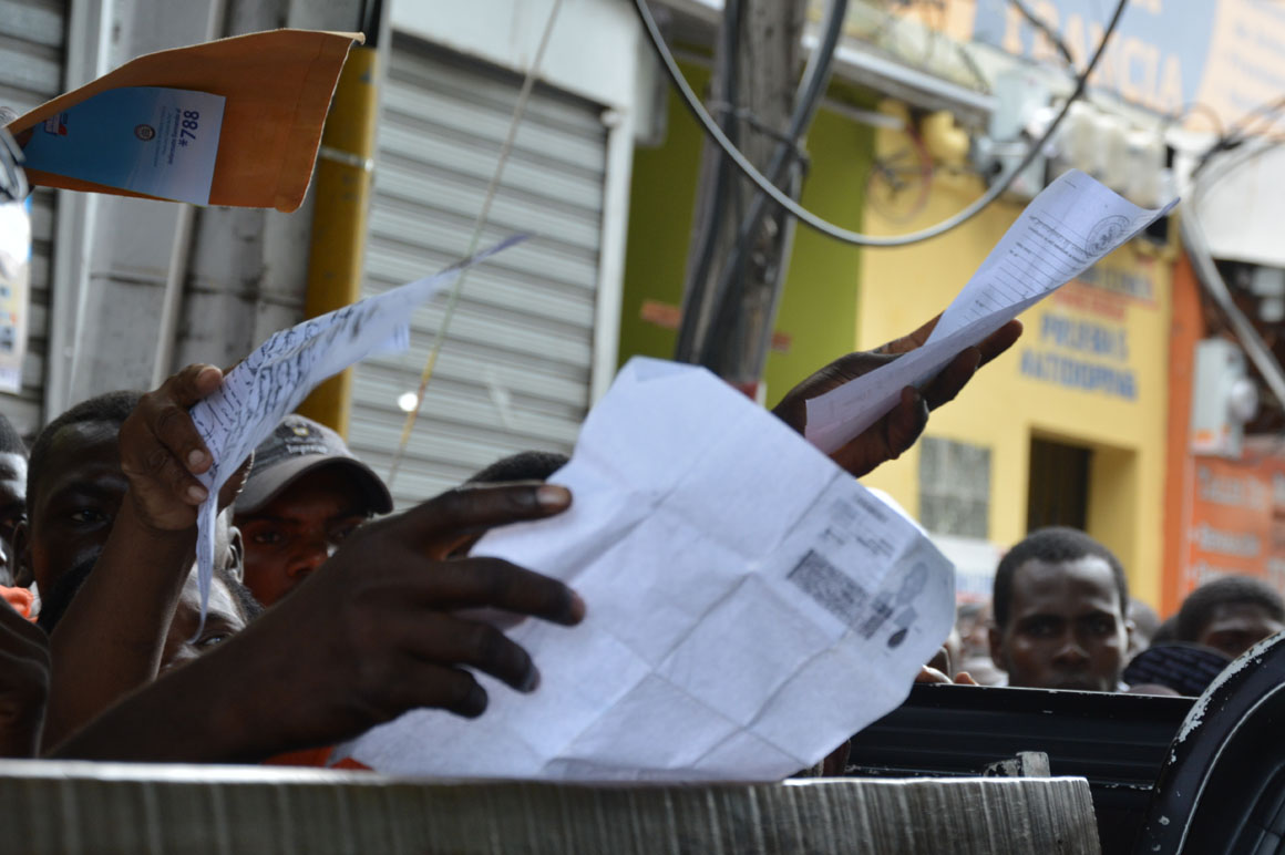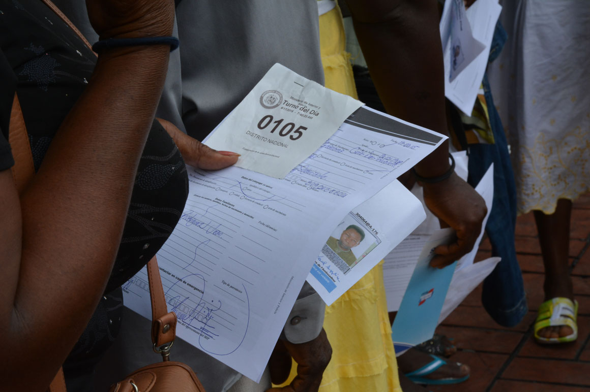 “Vine en el 2010. Tengo mi pasaporte, gracias a Dios”, cuenta Marta, quien asegura que como otros, ha visto obstaculizado el proceso de registro en las oficinas del Ministerio de Interior y Policía. “Tengo mis hijos allá (en Haití). Mi madre nunca quiso que los trajera”, narra, con los ojos ocultos detrás de unas gafas oscuras. “Estoy a la buena de Dios”, dice resignada, abanicándose con los papeles pendientes de depósito.