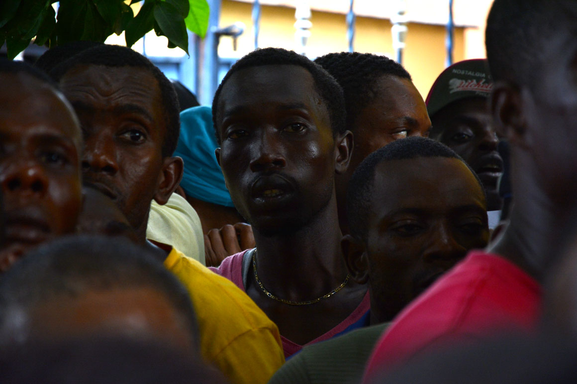Detrás de ellos, un grupo aguarda sentado su turno, sin otra opción más que esperar un “próximo”, “siguiente”, “el que sigue”, que le haga saber que puede respirar, porque serán tomados sus datos; un paso de avance en la regularización.