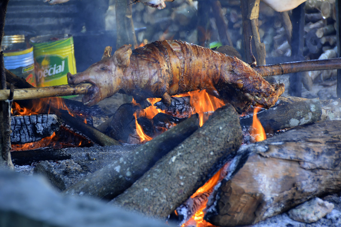 “Yo lo sé asar en dos formas, aunque en puya se coge más tiempo que en el horno….en el horno se coge como 1 hora u hora y media, en puya unas siete”, explica Mariano, mejor conocido como El Negro.