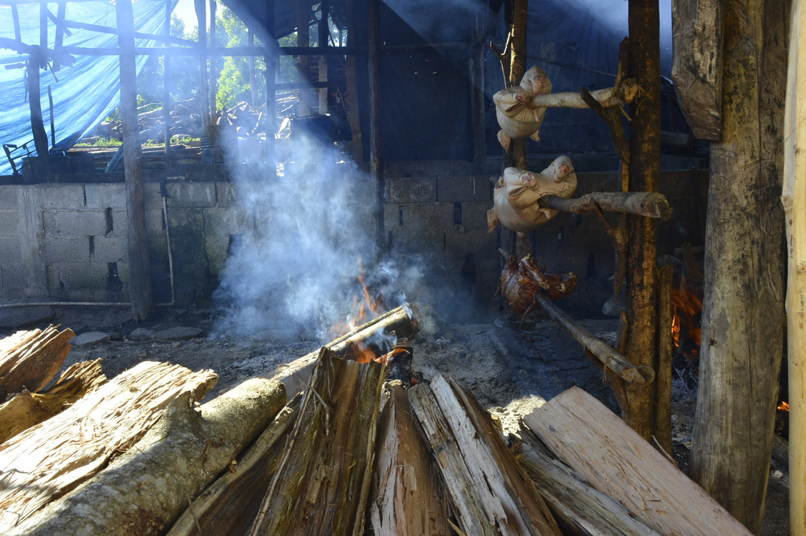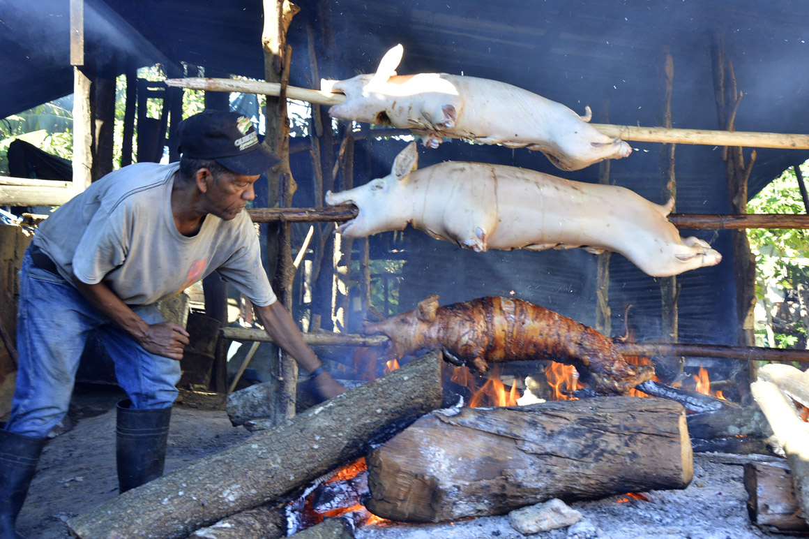 Mariano cuenta que su trabajo es matar al cerdo, colocarlo en la puya luego de sazonarlo hasta que se cocine por lo menos desde cuatro a siete horas, esto dependiendo del tamaño y el peso del animal.