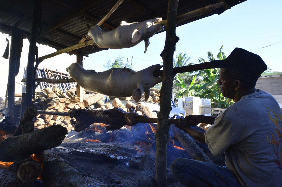 SANTO DOMINGO, República Dominicana.- Mucho orégano, sal y ajo, forman parte de los ingredientes esenciales para sazonar un buen cerdo, según explica Luis Mariano, alias Negro, quien desde hace más de 10 años trabaja en la preparación del cerdo.