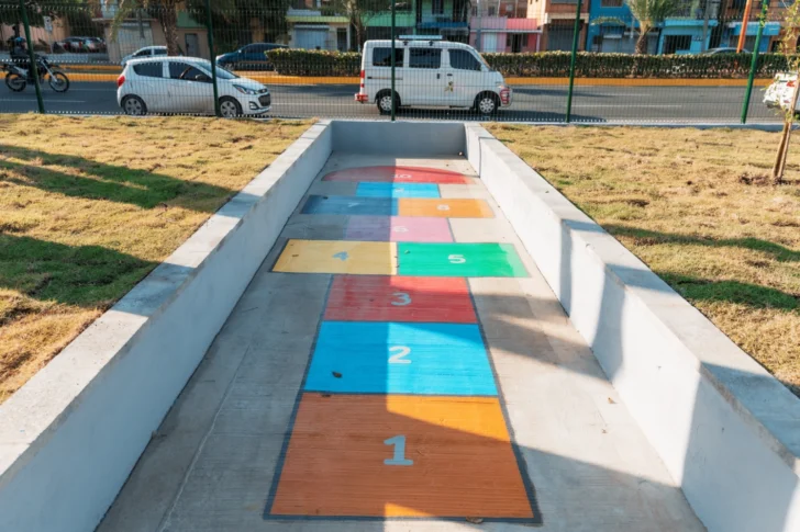 Ubicado en el Expreso V Centenario con calle Hermanos Pinzón, el recuperado espacio cuenta con 1,000 metros cuadrados de extensión, que incluye área infantil, mesas de picnic, verja perimetral, grama, árboles, bancos, luces led y rampas de acceso inclusivo.
