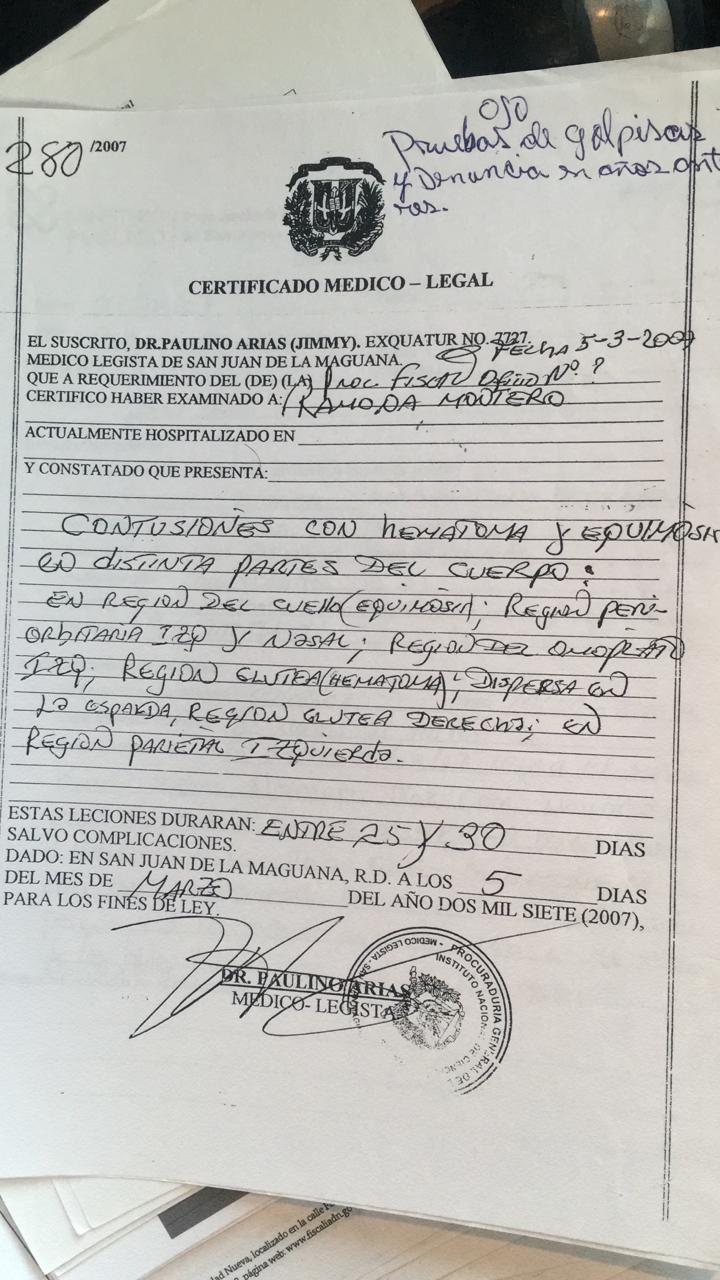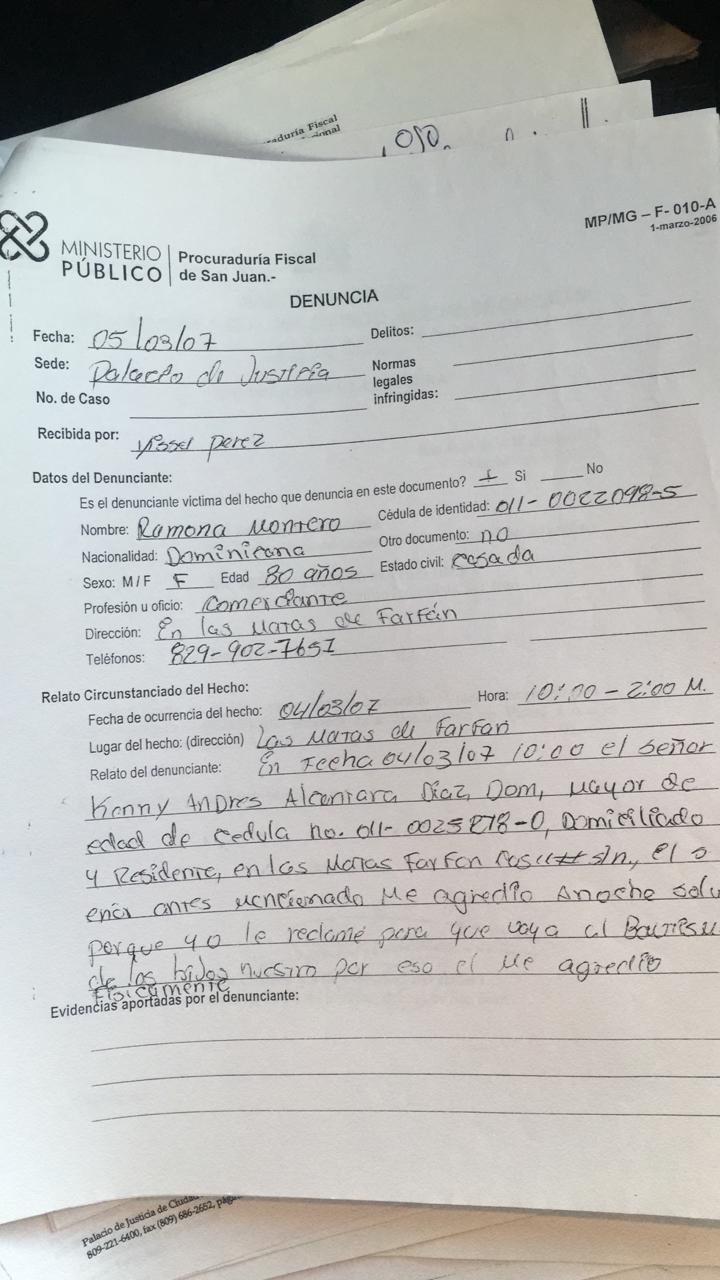 Montero fue a ponerle una denuncia y le indicaron que no podía ejecutarla en la capital porque su caso pertenecía a Las Matas de Farfán. Al explicarle la situación y plantear las influencias que tiene el agresor en su pueblo, le tomaron la denuncia.