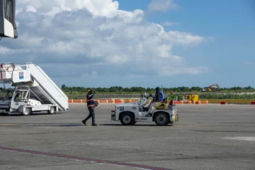 Al pie de la escalerilla, el encuentro fue fugaz. Aunque un vehículo de seguridad bloqueó la visión directa del apretón de manos con el ministro dominicano, la dinámica fue breve. No hubo discursos en la pista, ni largas ceremonias.