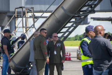 A la 1:56 PM, todo había terminado. La hilera de vehículos negros arrancó, llevando al secretario rumbo al Palacio Nacional para reunirse con el presidente Luis Abinader. Atrás, en la pista, los periodistas comenzaban a ser trasladados de vuelta al interior del aeropuerto, dejando el asfalto vacío reverberando al efecto del calor, tras haber sido escenario de una visita sin precedentes.