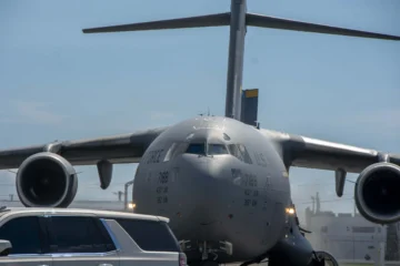 Pero la demostración de fuerza no vino sola. Justo detrás, como una sombra colosal, se posicionó un US Air Force 7188, una aeronave grisácea de tres o cuatro pisos de altura. Sus turbinas, aunque silenciosas para su tamaño, expelían un calor tan abrasador que distorsionaba la visión, haciendo el paisaje líquido y ondulante.