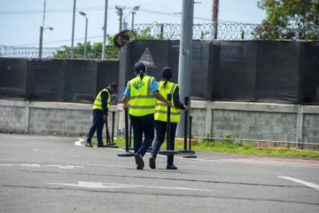 Hombres de traje negro y gafas Ray-Ban se mezclaban con el personal del CESAC; perros de la unidad K-9 olfateaban los lentes de las cámaras de televisión buscando explosivos en los miembros de la prensa local, y agentes del Servicio Secreto norteamericano medían distancias con la mirada.