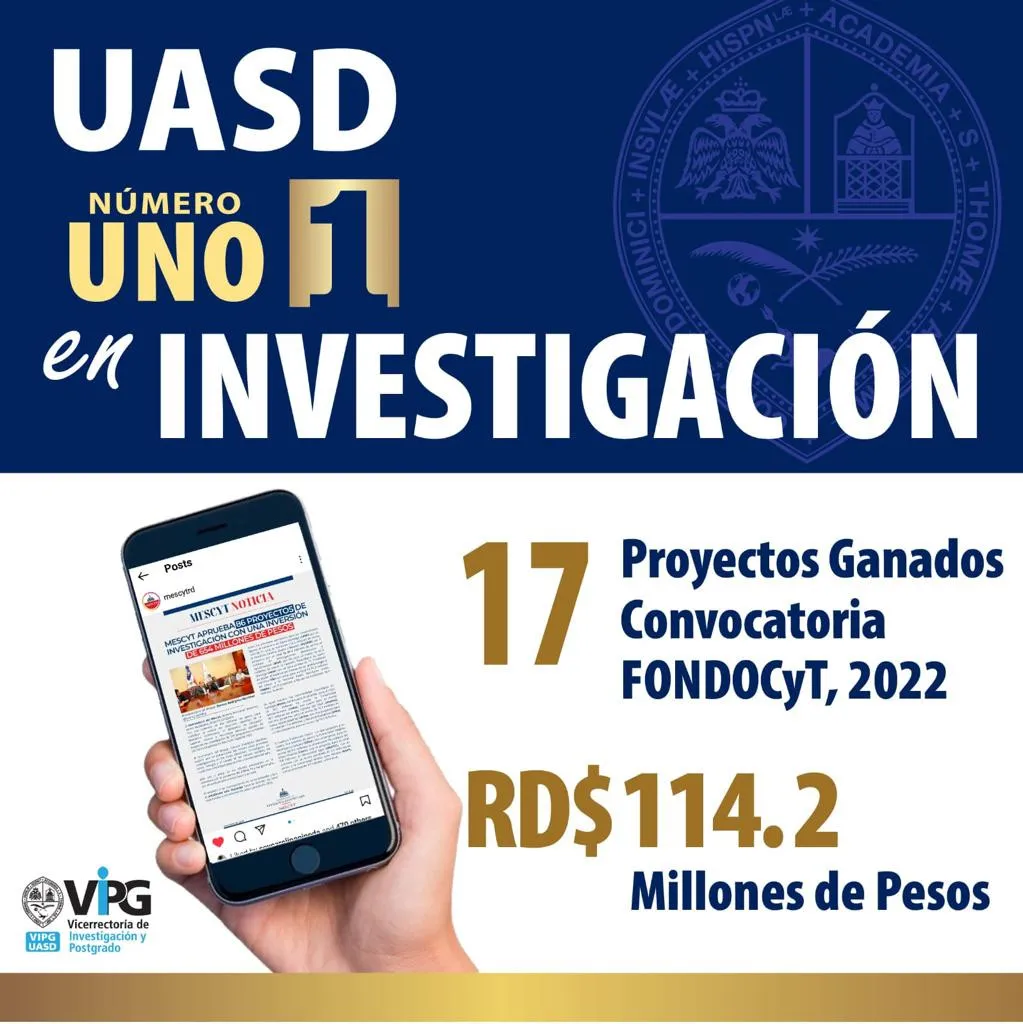 La Universidad Autónoma de Santo Domingo (UASD) se consolidó en el puesto número uno entre las academias dedicadas a la investigación científica a nivel nacional, según el más reciente reporte del Ministerio de Educación Superior, Ciencia y Tecnología (Mescyt).