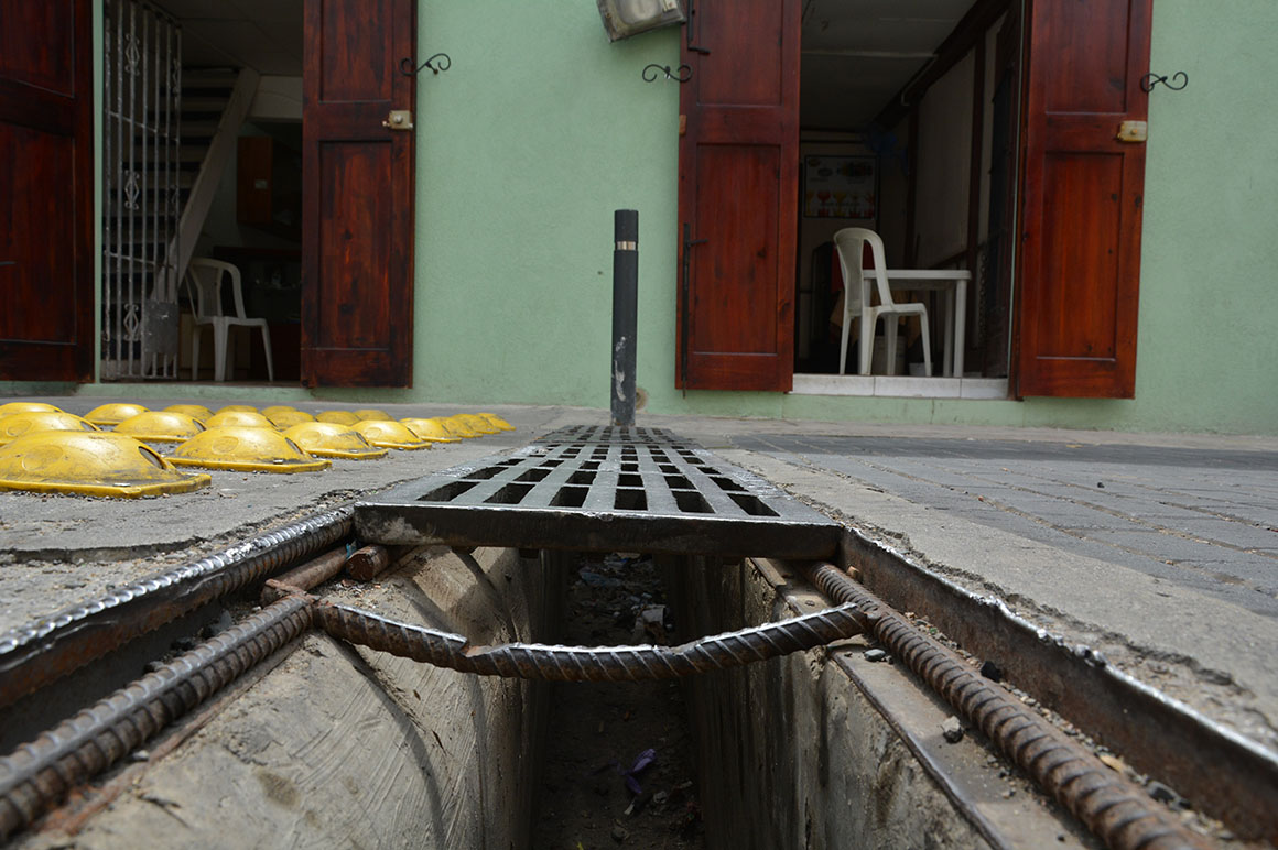 “Ellos taparon parte de la zanja y dejaron esos hoyos ahí”, dice Nelson Cárdenas, empleado del colmado Gavilán en referencia a dos agujeros de unos 90 centímetros correspondientes al sistema de alcantarillado de que permanecen abiertos justo frente al negocio donde labora como cajero.