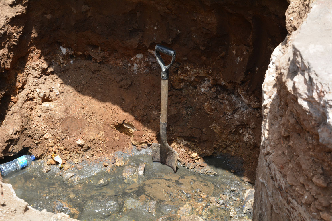 La excavación se produjo el miércoles de la semana pasada, después de que los residentes denunciaran que el agua para el consumo humano llegaba contaminada. La CAASD envió una brigada, que se limitó a abrir la zanja. En el lugar hay maquinarias estacionadas y detenidas.