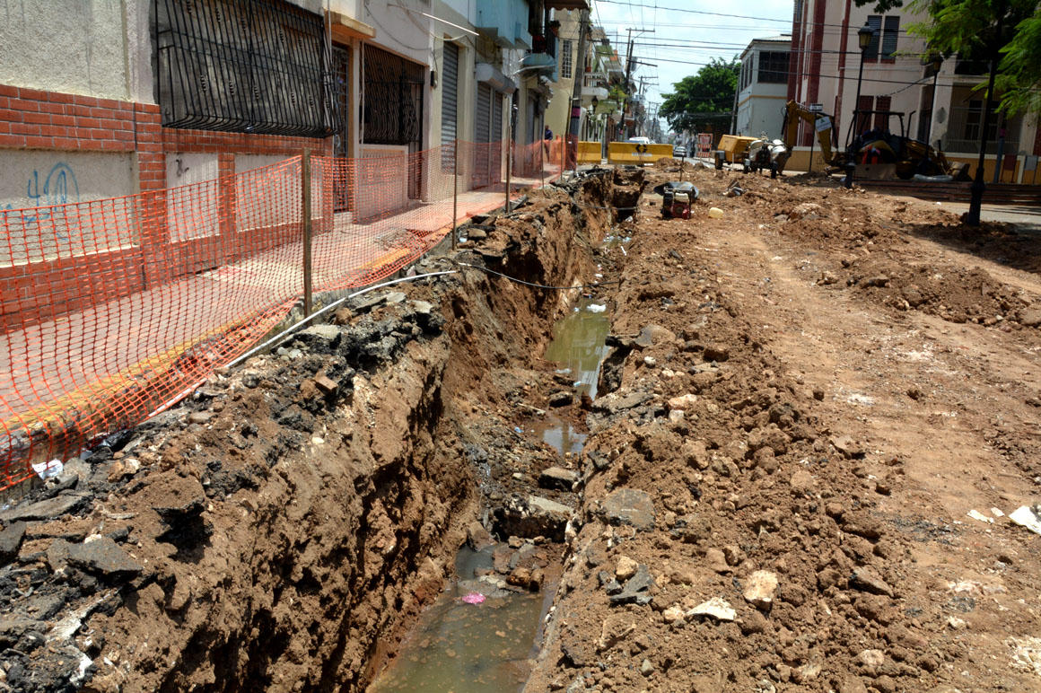 SANTO DOMINGO, República Dominicana.-Residentes y comerciantes denunciaron que una zanja cavada como parte de los trabajos de remozamiento que llevan a cabo las autoridades en la Zona Colonial, ha sido dejada abierta, provocando acumulación y derrame de aguas sucias y heces, y despidiendo un olor desagradable.