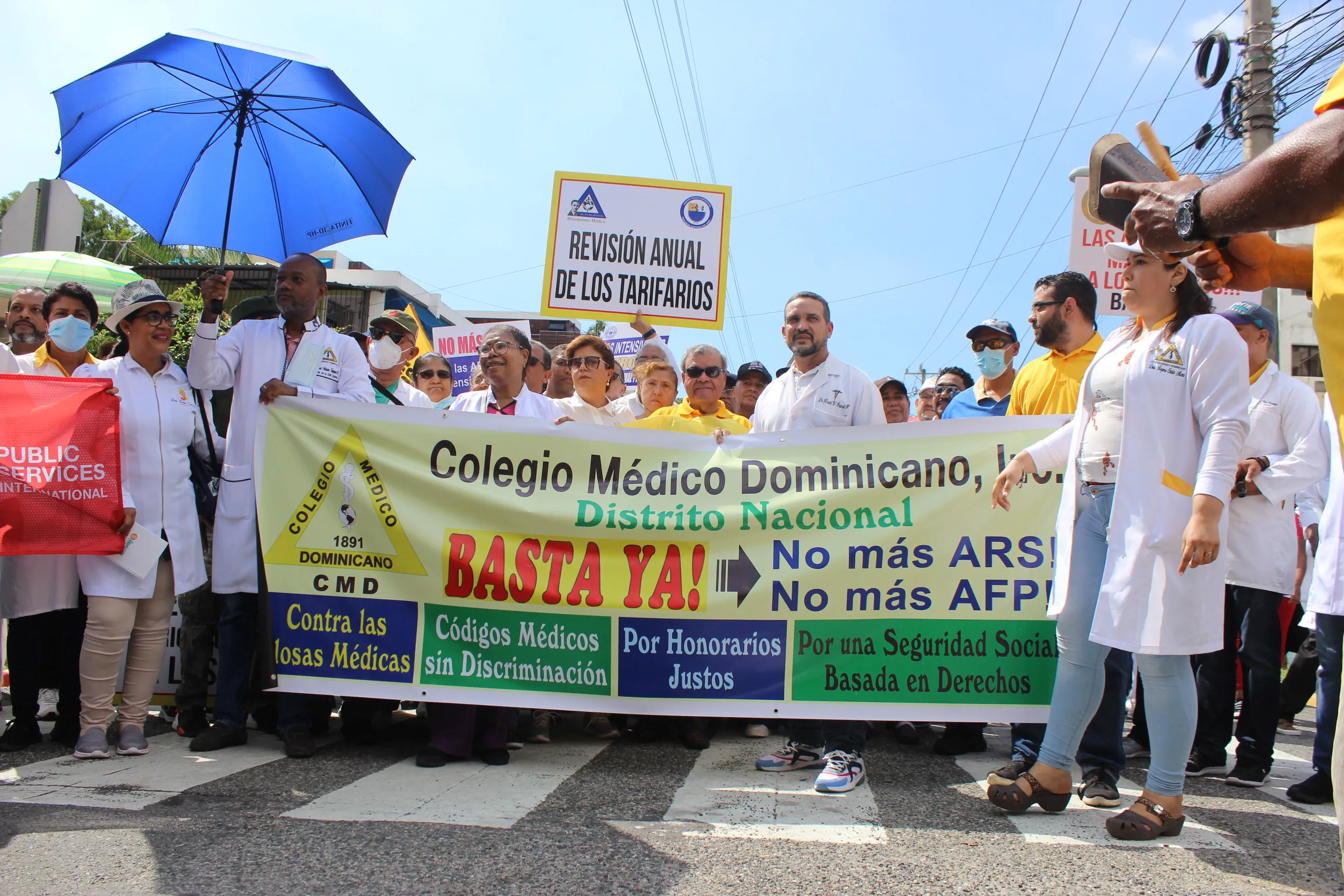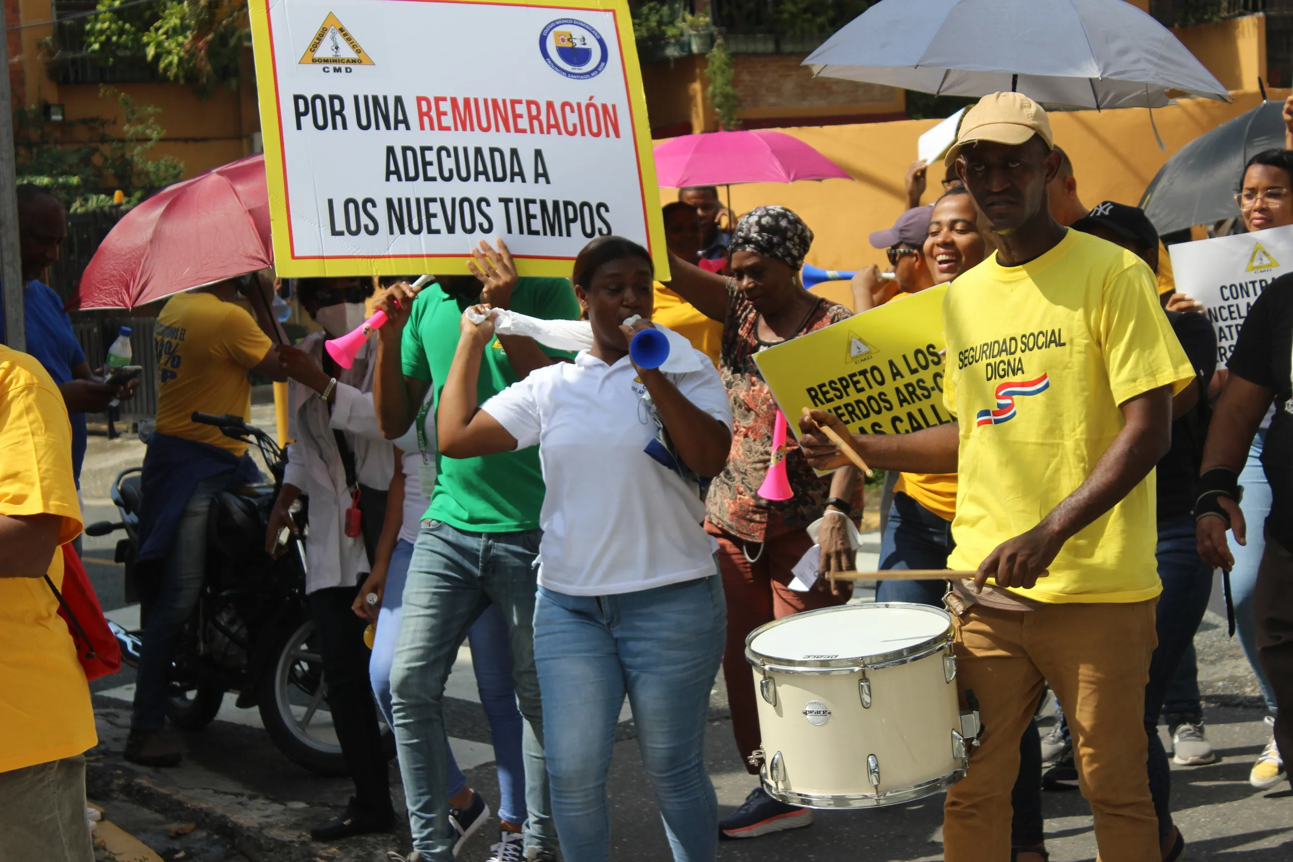 A la protesta pacífica, que partió desde el CMD y que recorrió varias avenidas del Distrito Nacional, se unieron otros gremios, la Coalición por la Seguridad Social Digna y la Asociación Dominicana de Profesores (ADP).