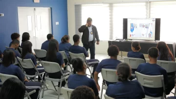 Luego los alumnos, fueron llevados a la sede central de la DNCD, recibieron orientación sobre la labor que realiza la institución, así como la presentación de un audiovisual que destaca las distintas acciones desarrolladas por la agencia en contra del narcotráfico.