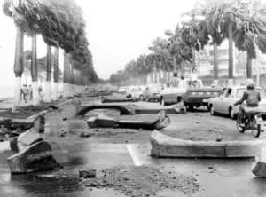 Cada minuto había más gente allí. Muchas, de rodillas ante la imagen de yeso de Jesús, rezando sin parar. Otros, hombres, comentaban. Se notaba un consenso en la resignación. Era inminente el paso del fenómeno natural sin precedentes. Los sureños tenían la experiencia amarga del Inés del 29 de septiembre de 1966, pero David le superaba en potencia.