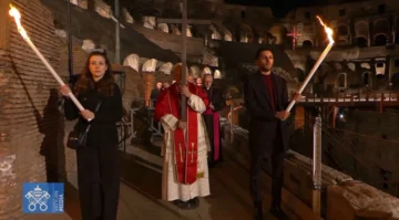 El rito, que rememora el calvario de Jesús desde su condena a muerte hasta su sepultura, comenzó en el interior del Anfiteatro Flavio, símbolo del martirio de los primeros cristianos.