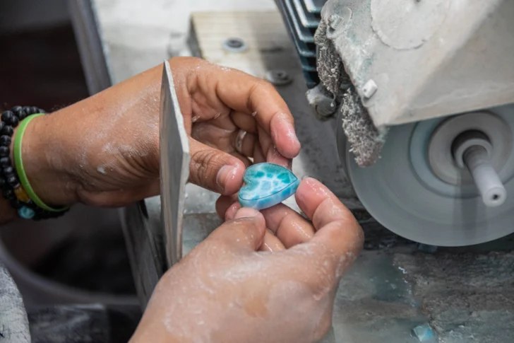 Hoy, 778 mineros trabajan directamente en la extracción del larimar, de acuerdo con la Dirección de Promoción Minera, en un proceso que se ha mantenido constante. Pero el verdadero cambio ha venido con la industrialización local: lo que antes se vendía en bruto en mercados, ahora se transforma en piezas artesanales.