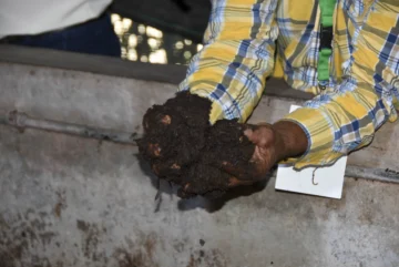 “Colocamos una malla y, sobre ella, ponemos alimento; las lombrices suben hacia la malla y, después de varios ciclos de alimentación, ya no quedan lombrices en la parte inferior, por lo que podemos trasladarlas a otra nave”, detalló.