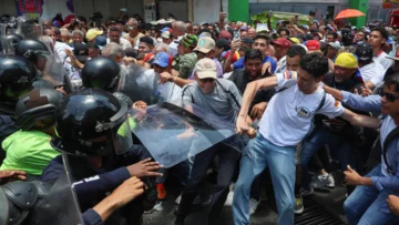 Los vídeos que circulan en la prensa local y redes sociales muestran filas de uniformados que intentan con sus escudos cortar el paso a los manifestantes, algunos de los cuales se enfrentan a ellos con arengas o forcejeos.