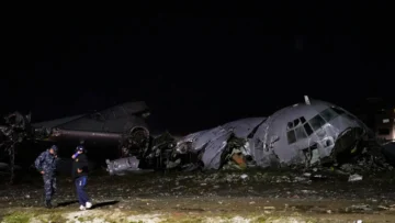 Partes del fuselaje destruido de la aeronave Hércules de la Fuerza Aérea Boliviana yacían en una calle contigua a la terminar aérea, rodeadas de autos que también sufrieron serios daños, según imágenes del lugar captadas por la AFP.