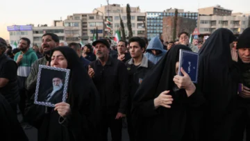 Vestidos en su mayoría de negro, algunos llorando y enarbolando retratos del ayatolá, en el poder desde 1989, los manifestantes corearon "¡Muerte a Estados Unidos!" y "¡Muerte a Israel!" en medio de banderas de la República Islámica.