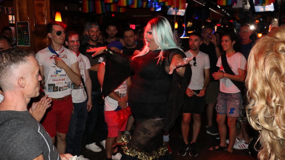 El bar dejó de ser deslucido y oscuro como en el pasado. Ahora es un sitio de atracción de turistas con decenas de banderas arcoíris que cuelgan del techo.