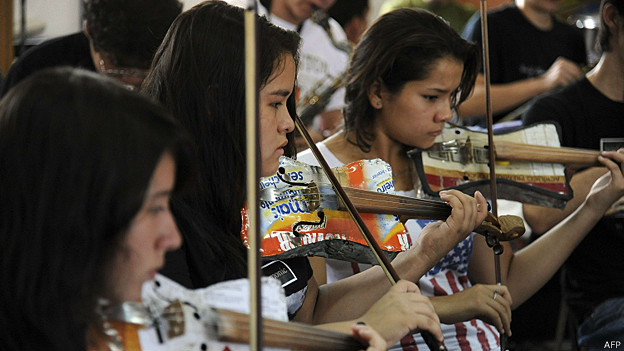Un programa de educación musical en Paraguay forma a jóvenes músicos y construye instrumentos con materiales recuperados de la basura.