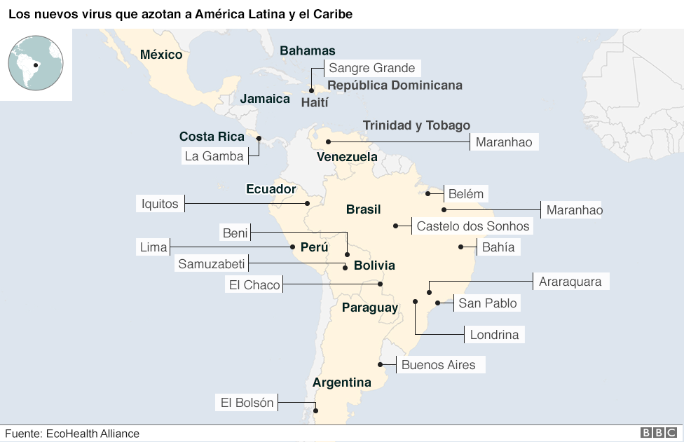 Según el banco de datos de enfermedades infecciosas emergentes de EcoHealth Alliance, América Latina y el Caribe fue caldo de cultivo de 27 tipos entre 1940 y 2013.