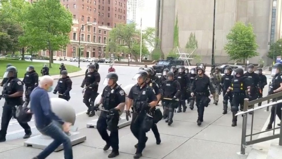 Durante las protestas contra el racismo que sacuden EE.UU. tras la muerte bajo custodia de George Floyd, un hombre de 75 años, Martin Gugino, resultó herido de gravedad tras ser empujado por varios agentes la pasada semana.