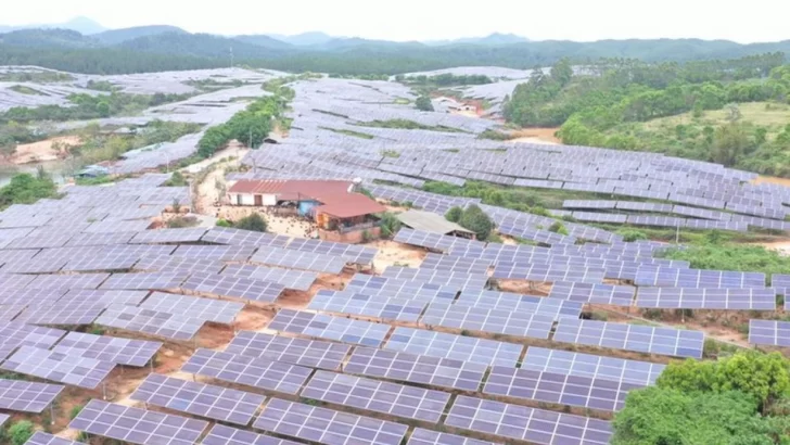 A unas horas en auto de Dongguan hay más señales de la escala de esta industria: hay paneles solares hasta donde alcanza la vista.