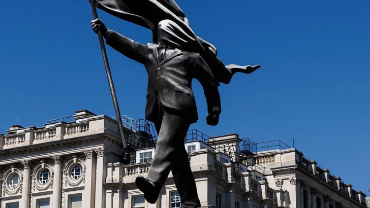 La estatua que acaba de aparecer es la última de una serie reciente de obras londinenses del artista, que es conocido por piezas de alto perfil y a menudo controvertidas en todo el mundo.