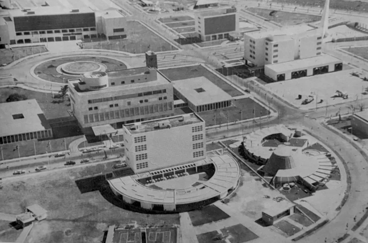 La histórica construcción de una exposición internacional masiva para mostrar los avances industriales, comerciales en un complejo de 800mil metros cuadrados de pabellones internacionales. Se descubrieron nuevos yacimientos de mármol para su construcción y la estética moderna incluyó avanzadas técnicas bioclimáticas de quiebra soles en retícula en fachadas como piel identitaria y auténtico gesto de la vanguardia formal en el soleado caribe antillano.