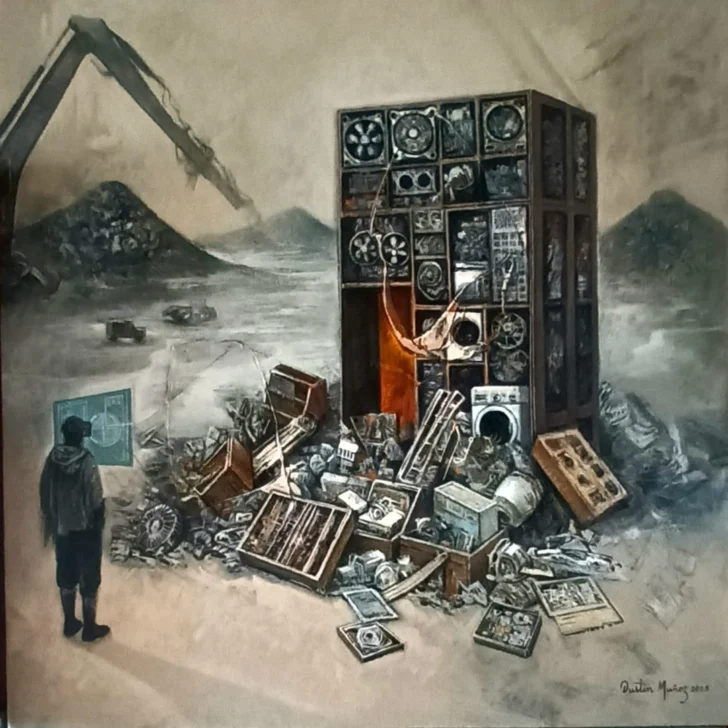 Pues bien, para mí, el artista Dustin Muñoz encaja en esta nueva estética visual. Este autor comparte con aquellos la necesidad de integrar el pensamiento crítico, la percepción y la emoción en su proceso artístico. Ahora, a partir de aquí, nuestra mirada se dirige a interpretar la carga simbólica (iconos, índices, símbolos). También se enfoca en la densidad hermenéutica (capacidad de abrir interpretaciones), a la fuerza disruptiva (fracturas, anomalías, tensiones dentro del realismo), a la complejidad compositiva (uso de luz, perspectiva, objetos-signo) y a la capacidad de sintetizar la poética del artista.