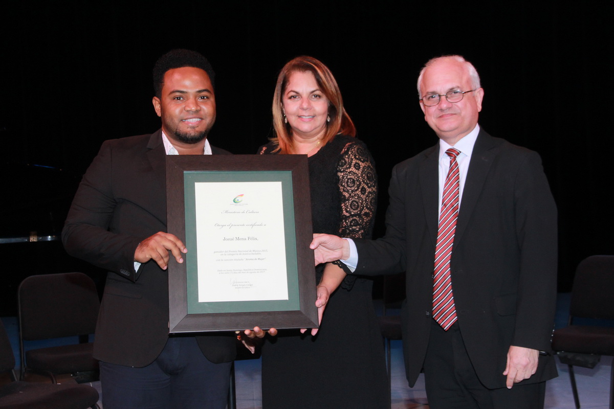 SANTO DOMINGO, República Dominicana.- El Ministerio de Cultura hizo entrega el lunes del Premio Nacional de Música 2015 a los ganadores en sus respectivas categorías, en una ceremonia efectuada en la sala “Máximo Avilés Blonda” del Palacio de Bellas Artes.