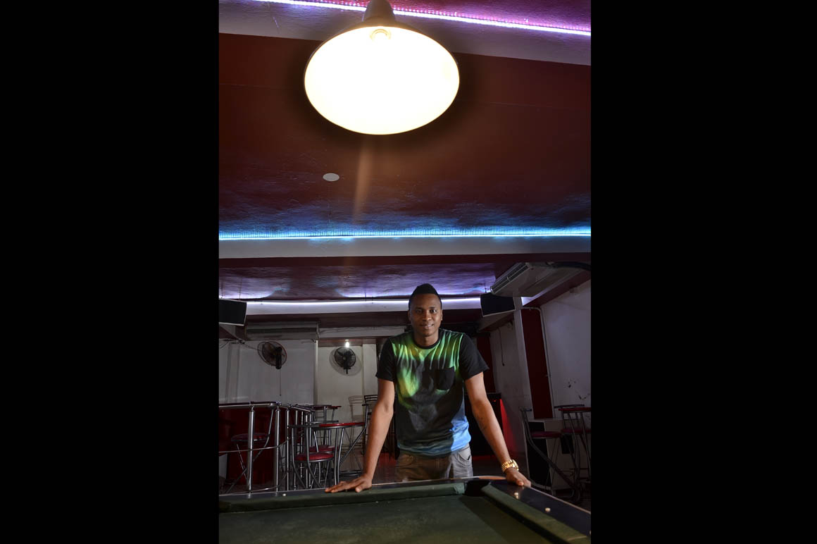 “Todos mis clientes consumen mi música. Les gusta. Son los que me han ayudado más. Desde que sale un tema se los pongo, y me dan su opinión”, afirma José Manuel Ceballos, mientras sonríe al ser deslumbrado por el destello de una de las cámaras.