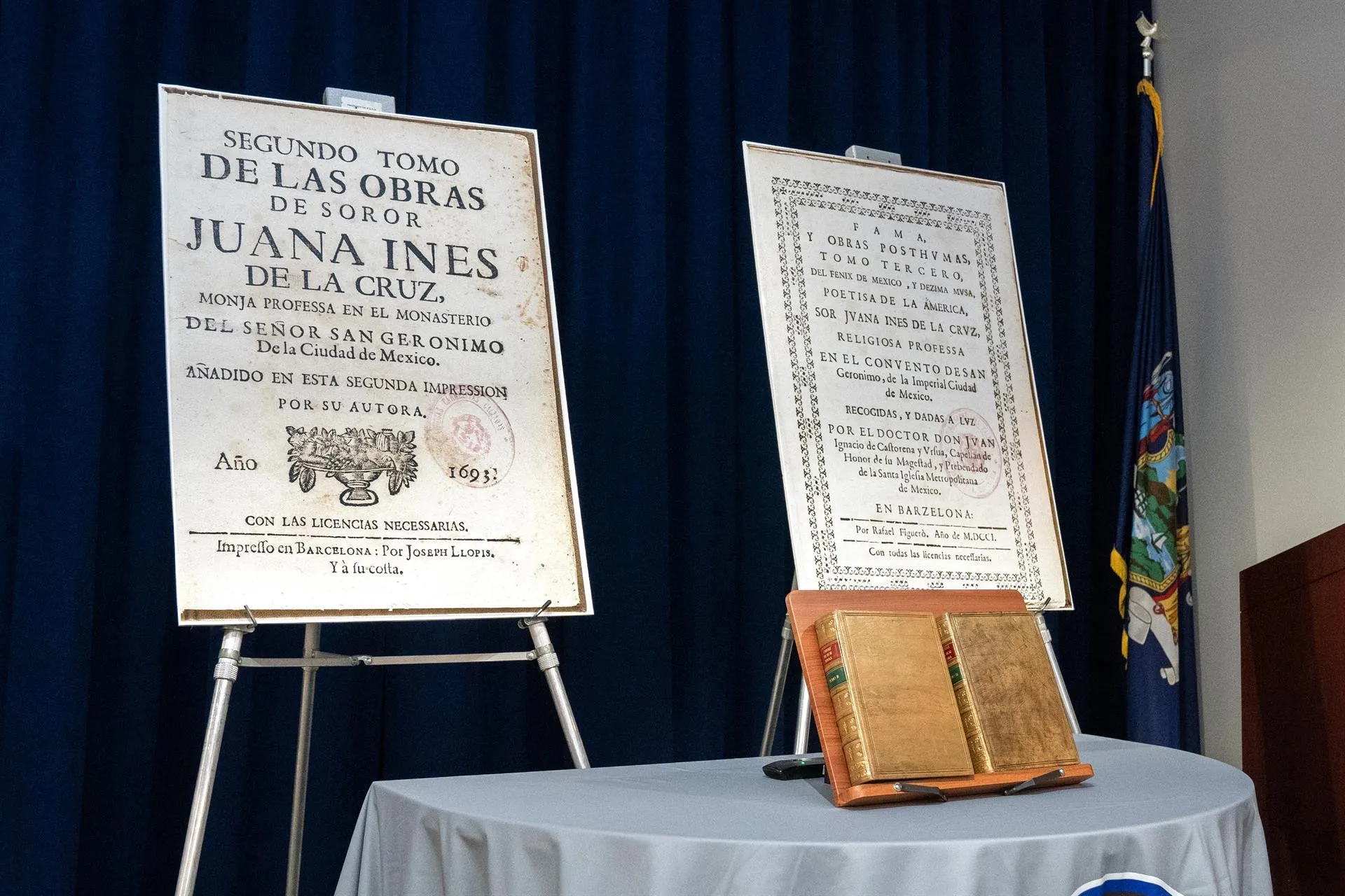 Dos tomos editados a finales del siglo XVII con escritos de sor Juana Inés de la Cruz (1648-1695) que fueron sacados ilegalmente de España han sido entregados este martes a las autoridades españolas por la Fiscalía de Nueva York, en una ceremonia presidida por los textos de la religiosa, poetisa e intelectual.