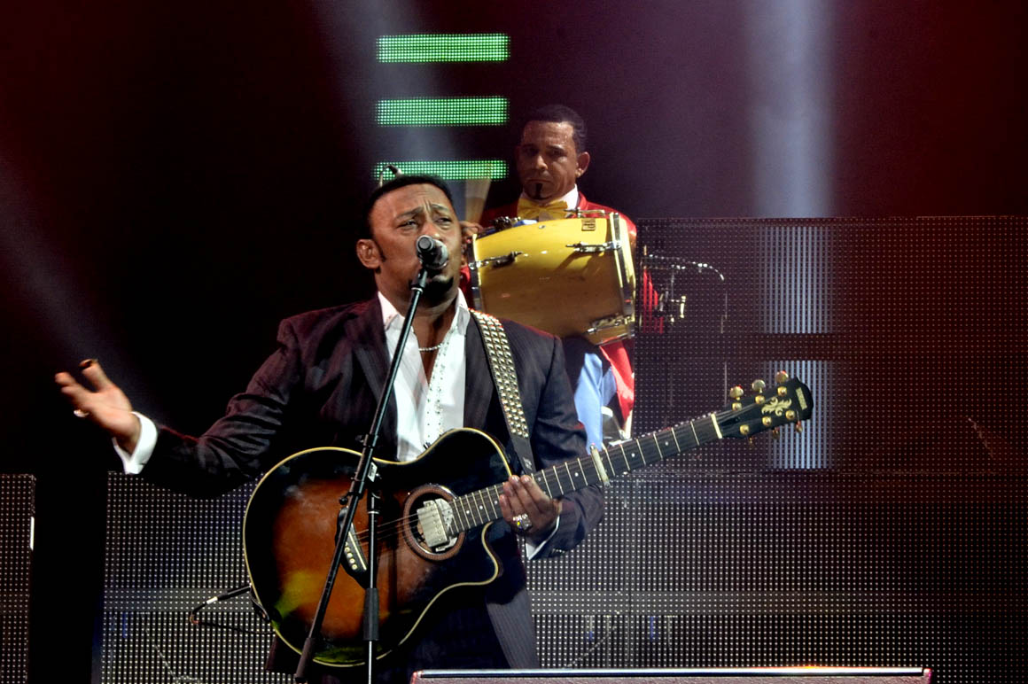 Los primeros en presentarse este domingo fueron Los salseros puertorriqueños Gilberto Santa Rosa y Víctor Manuelle, quienes pusieron a bailar y tararear sus canciones a todo el público.